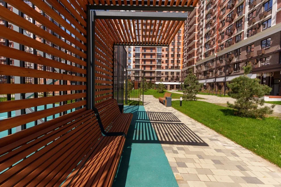 Территория ЖК «Самолёт» — это настоящий курортный парк с 50-метровым поющим фонтаном, уютными зонами стрит-фуда и арт-объектами. Здесь можно гулять по бульвару длиной 2 км, отдыхать у озера с набережной, смотреть кино под открытым небом в амфитеатре или устраивать пикники. Дети обожают современные площадки с безопасным покрытием, а взрослые — скейтпарк, велодорожки и спортивные зоны. А самое главное — дворы без машин, где царит атмосфера спокойствия и беззаботности.