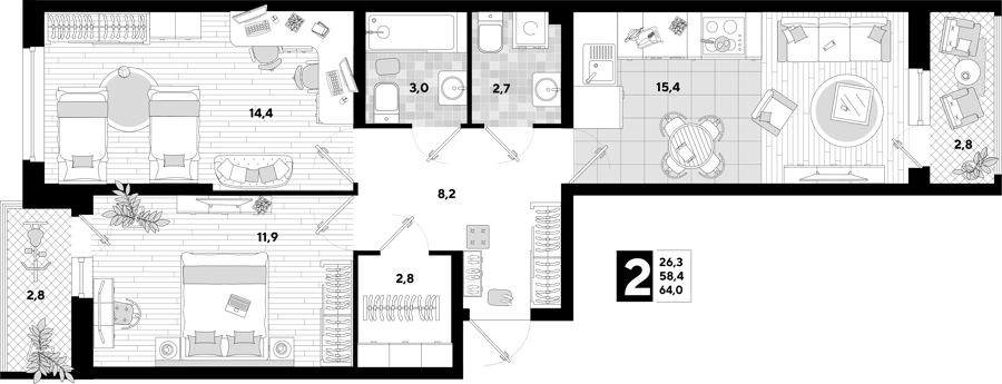 На сайте не весь каталог. Укажите параметры, мы подберем вам идеальную квартиру бесплатно!
