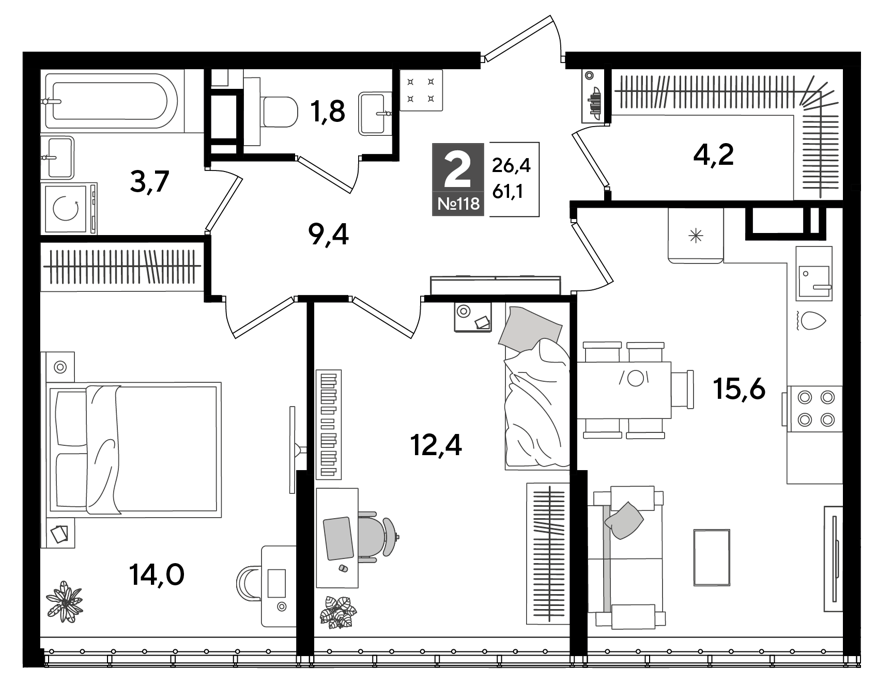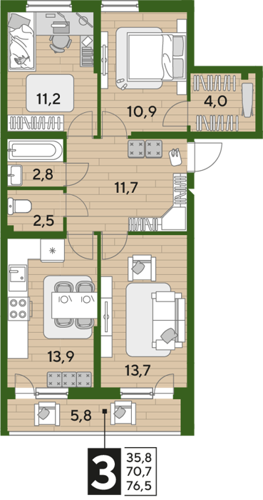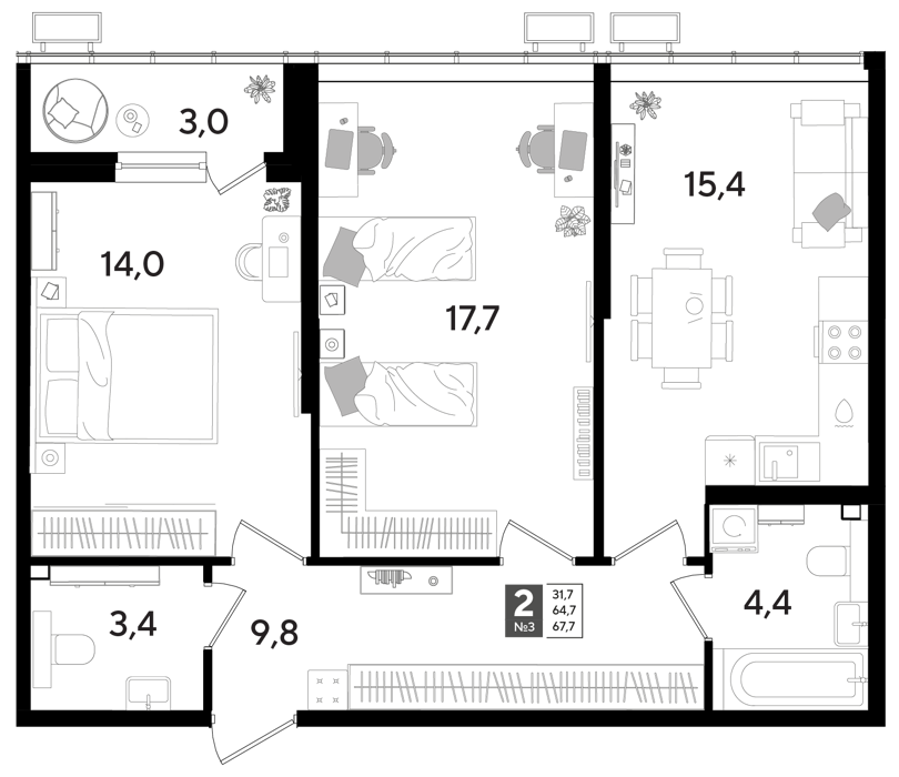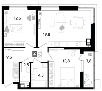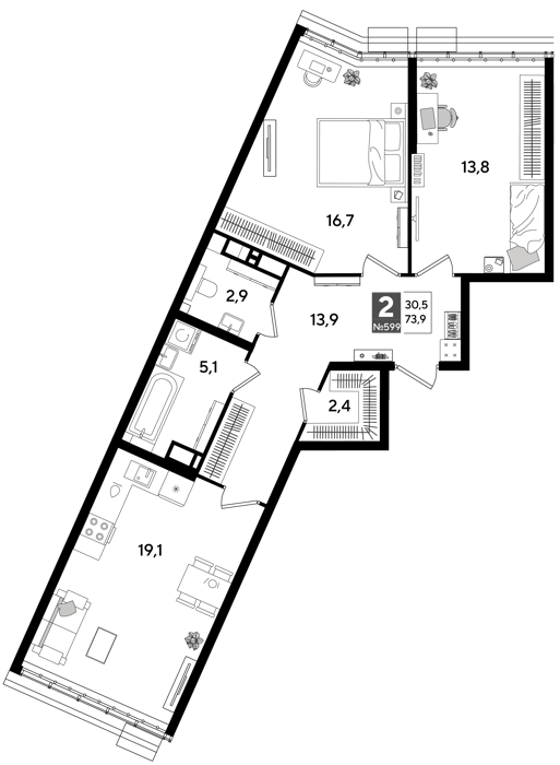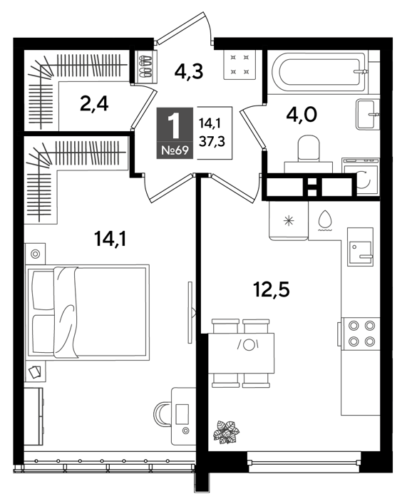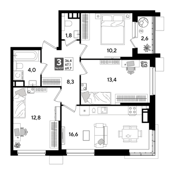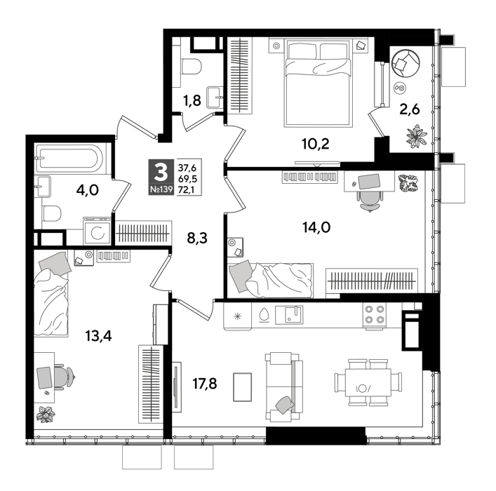 Площадь от 69.4 м2