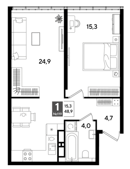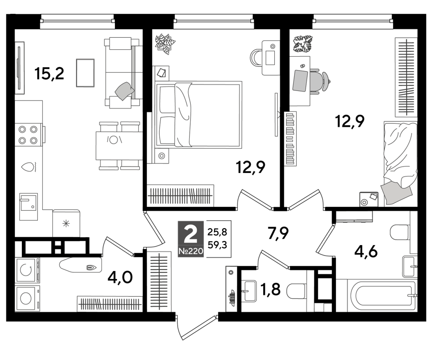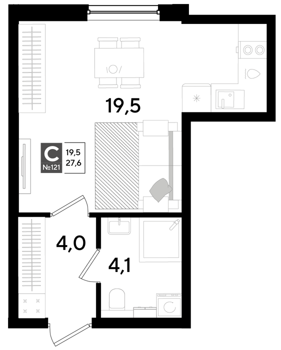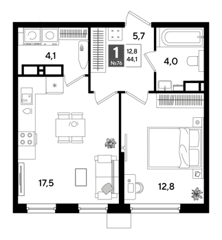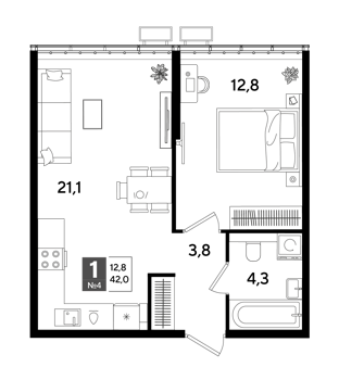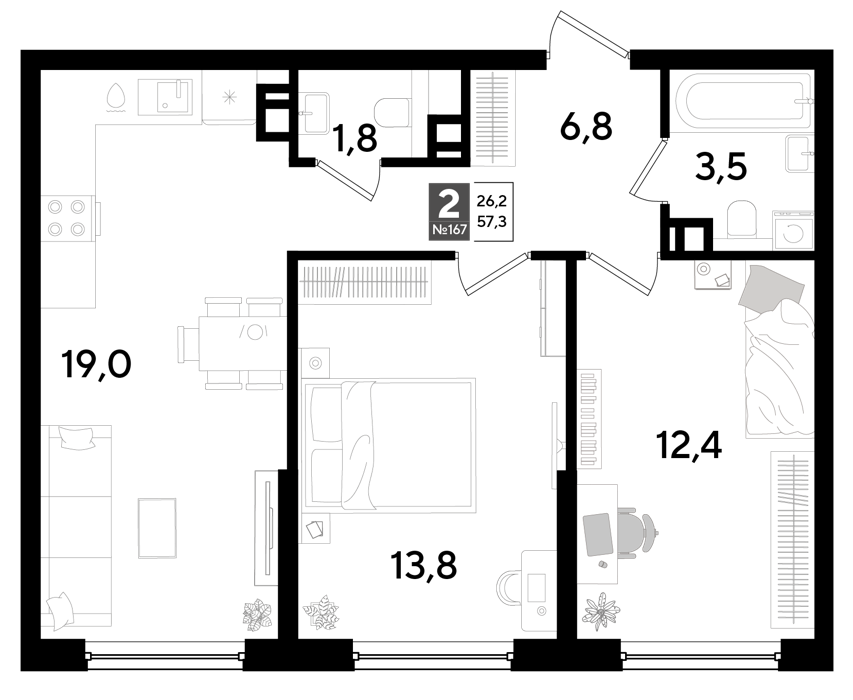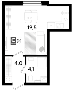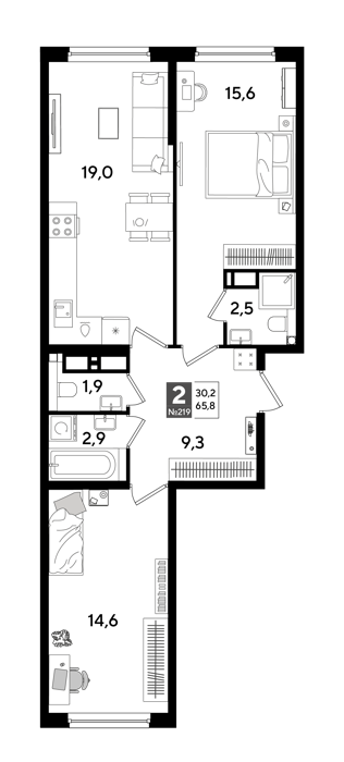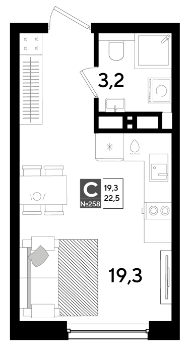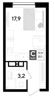Площадь от 19.2 м2