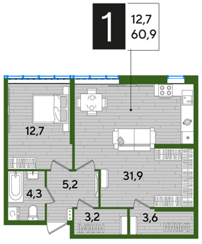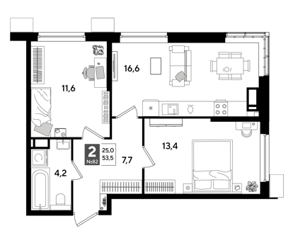 Площадь от 53.5 м2