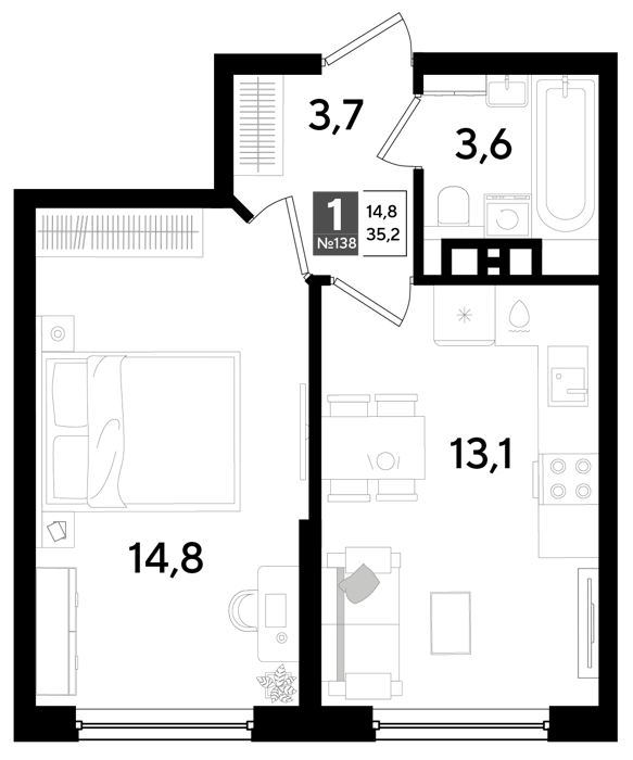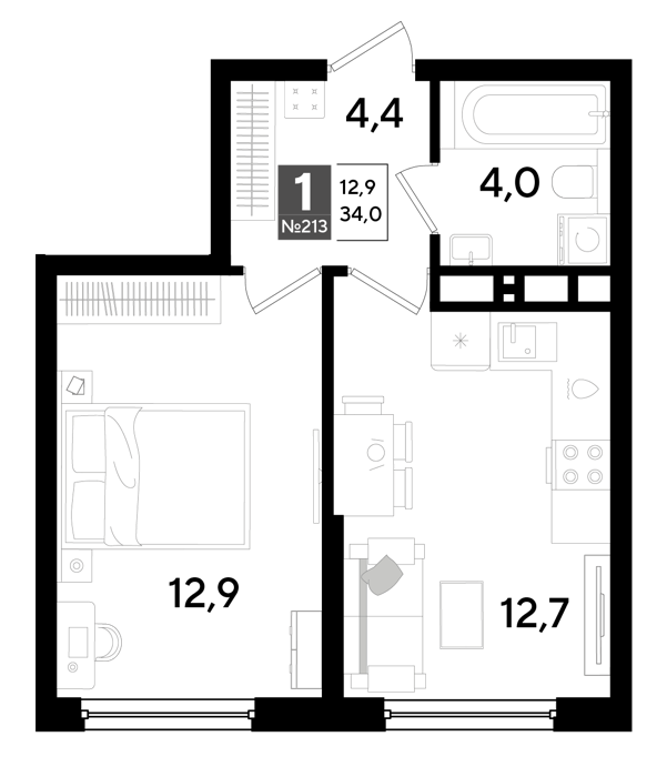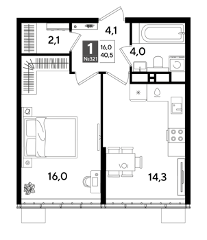 Площадь от 34 м2