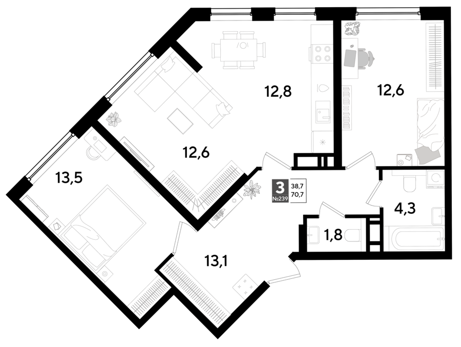 3 комнатные