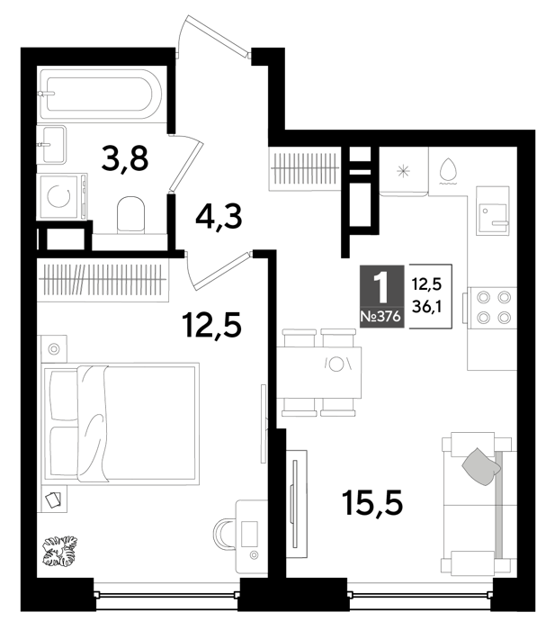 1 комнатные
