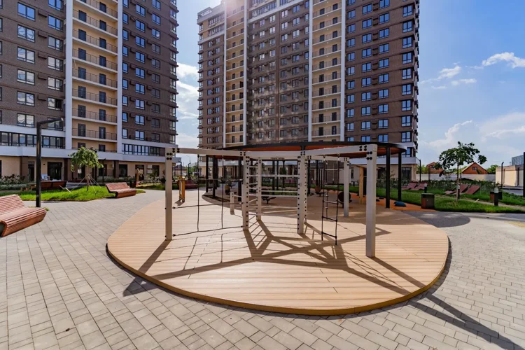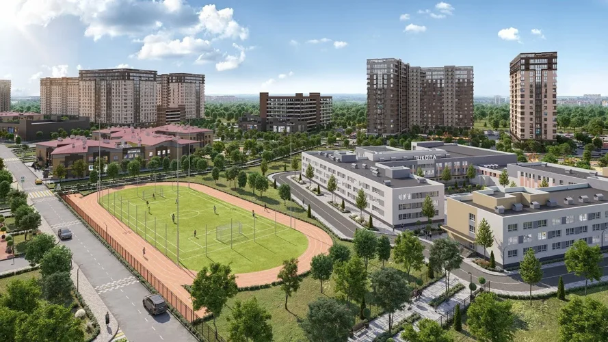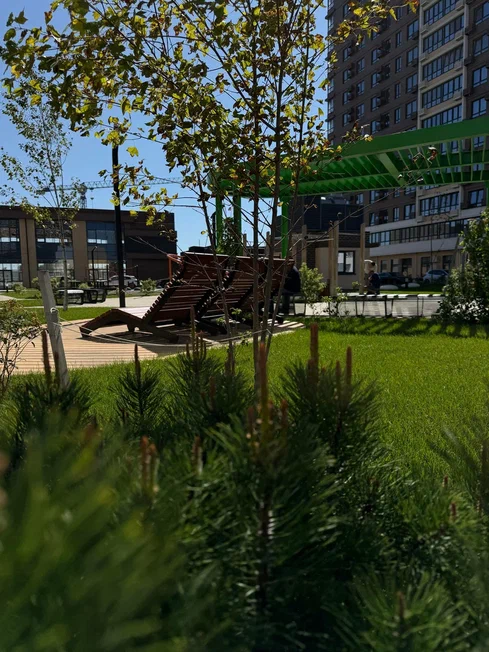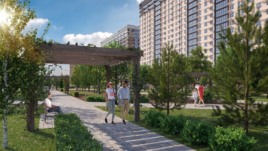 В микрорайоне будет всё необходимое для отдыха всей семьи: детские площадки, скамейки с теневыми навесами, гамаки, лежаки, световые качели, фуд-корты. Во дворах — множество мест для занятий спортом: зоны воркаута и спортивные площадки, круговая велодорожка длиной больше километра, открытые площадки для йоги.