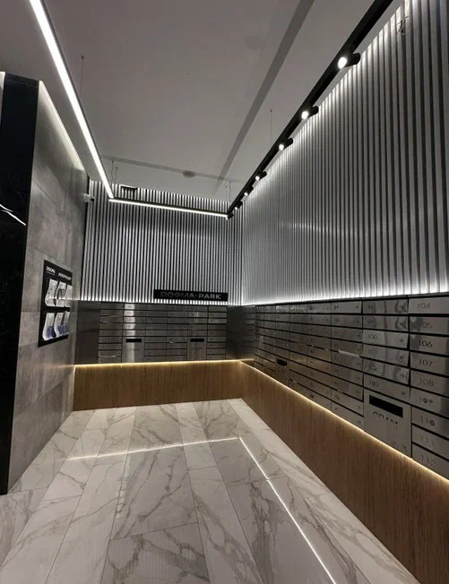 Входы в подъезды расположены на уровне земли, без порогов и перепад высот — удобно для родителей с колясками и маломобильных жителей. Дизайнерские лобби оформлены в минималистичном стиле. В отделке используются натуральные материалы, включая дерево и камень — за счёт этого здесь всегда уютно и приятно. В каждом подъезде будут тихие скоростные лифты.