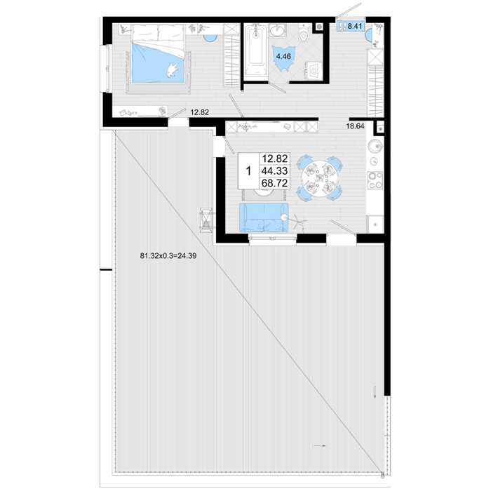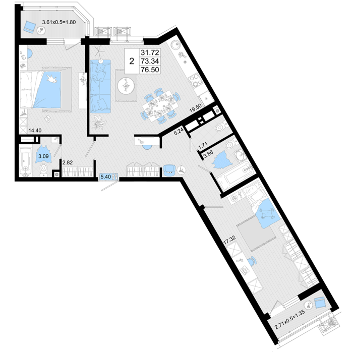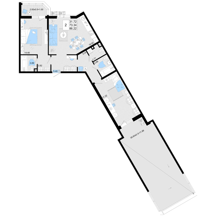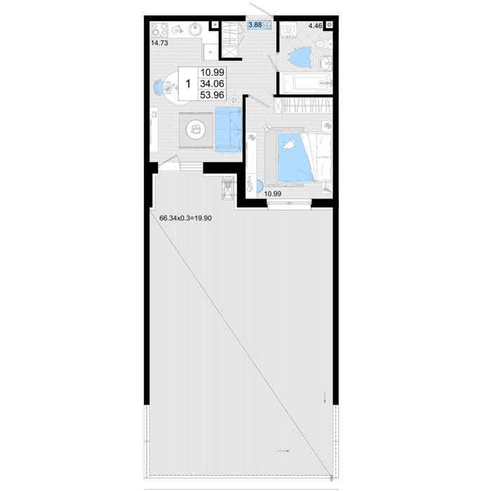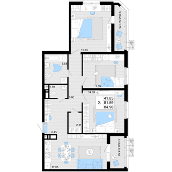 Площадь от 84.9 м2