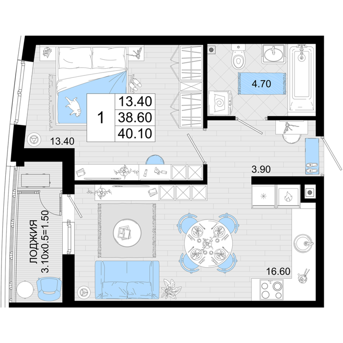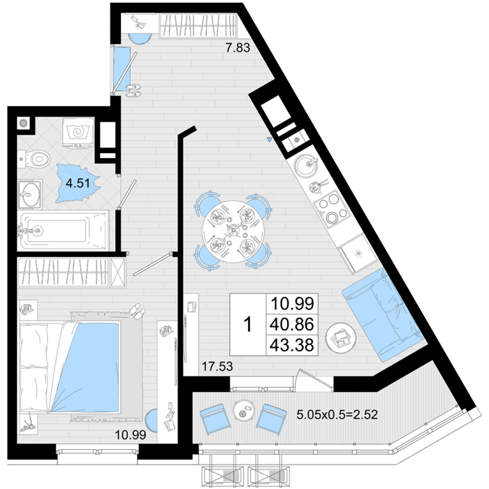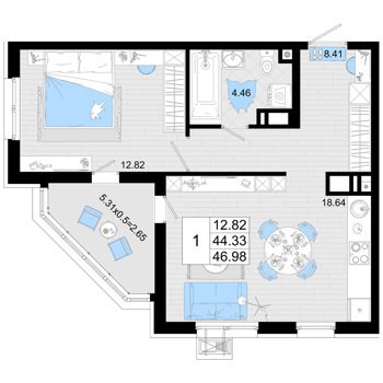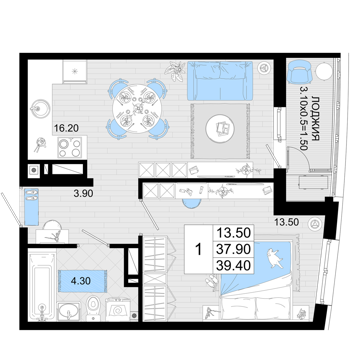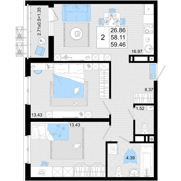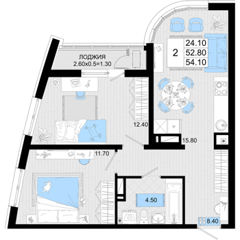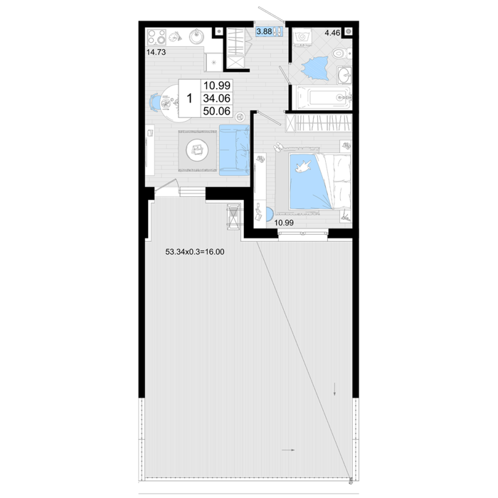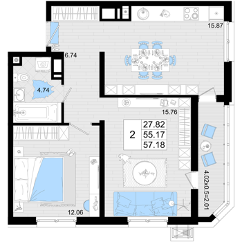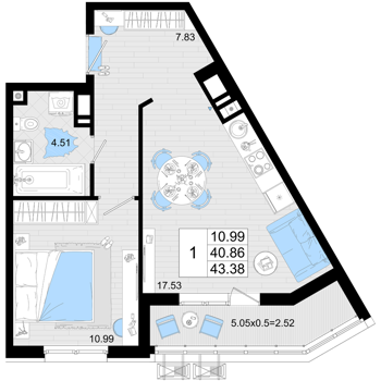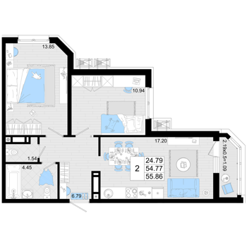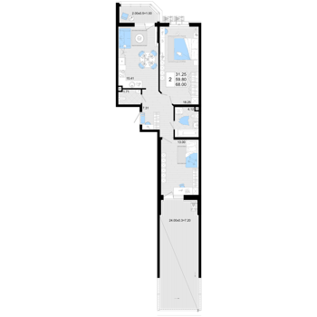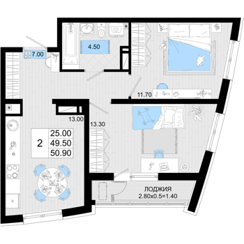 Площадь от 50.9 м2