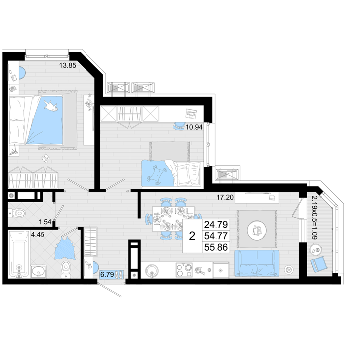 2 комнатные