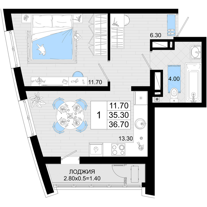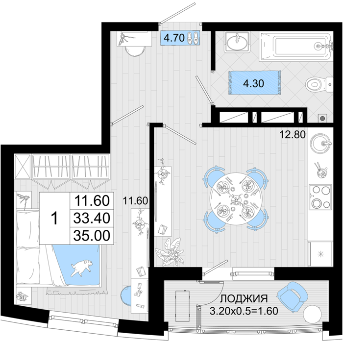 Площадь от 35 м2